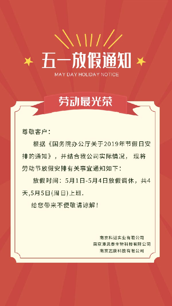 南京科進實業(yè)有限公司五一勞動節(jié)放假通知