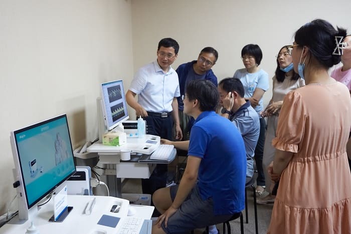 公司領(lǐng)導(dǎo)對(duì)專家們蒞臨指導(dǎo)表示熱烈歡迎,研發(fā)工程師為專家們介紹了南京科進(jìn)的TCD儀及產(chǎn)品的臨床應(yīng)用,并作了現(xiàn)場(chǎng)操作演示,對(duì)有關(guān)技術(shù)問題進(jìn)行了深入探討。