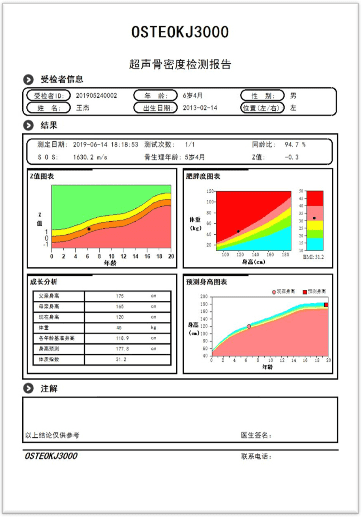 OSTEOKJ3000型超聲骨密度儀測量報(bào)告說明