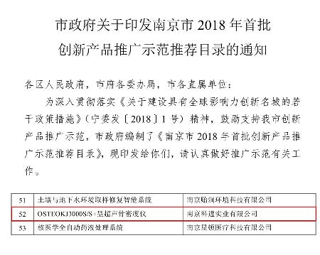 科進3000S/S+型超聲骨密度儀入選《南京市2018首批創(chuàng)新產(chǎn)品推廣示范推薦目錄》