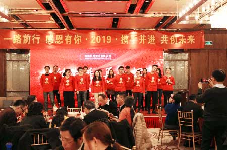 然后澳思泰總經(jīng)理俞政濤發(fā)表新年致辭,他說,2018年公司取得了驕人的業(yè)績,總銷售收入和利稅增長超過30%,共取得19項知識產(chǎn)權(quán),企業(yè)管理水平進一步提升,他代表公司感謝全體員工、家屬和各界朋友!2019年公司要加大技術(shù)創(chuàng)新力度,以滿足用戶需求為目標(biāo),加強內(nèi)部管理,“穩(wěn)健發(fā)展,再創(chuàng)輝煌”。隨后他宣布:聯(lián)歡晚會正式開始!