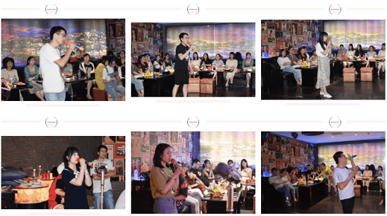 在自由歡唱的環(huán)節(jié)過后,我們迎來了本次活動的重頭戲——K歌比賽。17位參賽選手依次放聲高歌,他們憑借各具特色的聲線,各具風(fēng)格的演唱,征服了在場的所有聽眾,一陣陣的掌聲雷動,將現(xiàn)場氣氛推向高潮。